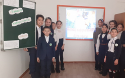 №27 мектептің кітапханасында 5 «Б» сынып оқушылары...