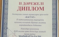 10 "А" сынып оқушысы Тоқан Жайна қалалық "Мәшһүр Жүсіп оқуларына "Білімді зерек адам болам!" - десең, Қара өзіңді басқаның айнасымен" - эссе жазу бағыты бойынша қатысып,...