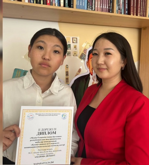 "Менің Отаныма - менің бастамам" республикалық шығармашылық жобалар конкурсының "Қазақстанның жеті кереметі" номинациясының қалалық кезенінің 2 дәрежелі дипломымен 10 "А"...
