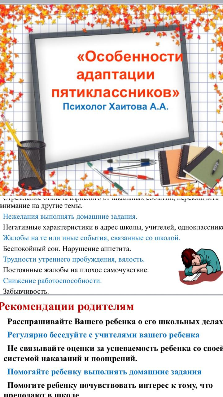 "5-сыныптағы бейімделу ерекшеліктері" атты ата-аналарға презентацияда психологтар оқушылардың жас ерекшеліктері туралы ақпарат беріп, бейімделуге қатысты ұсыныстар айтты.