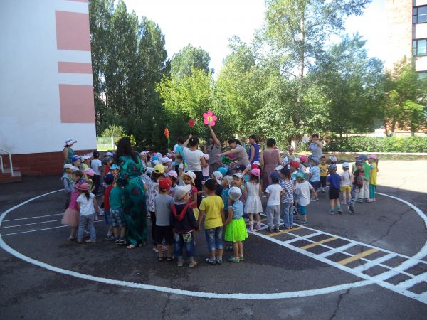 Балабақшаның жоспарына сайкес «жазғы қызықтар» атты ойын сауық болып өтті. Балалардың көңіл күйлерін көтеруге Жаз ханшайы мен Бүлдіргіш - тікенек келіп, ән айтып, ойын ойнатып, би биледі. Әрбір топ өз жасаған гүлдерін тауып алу ойыны қызықты болды