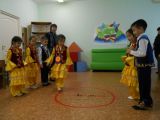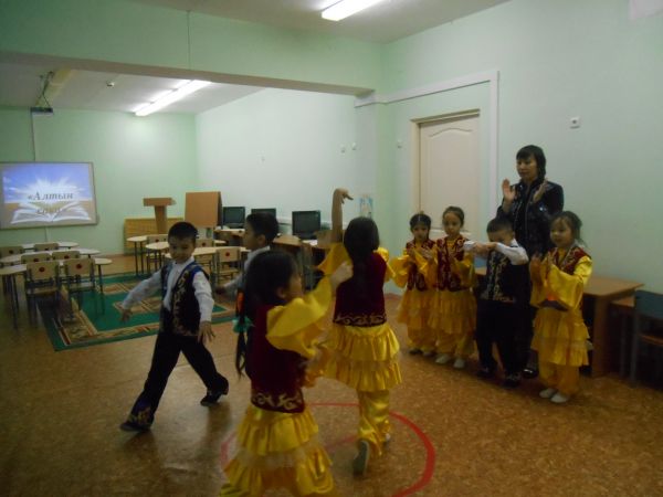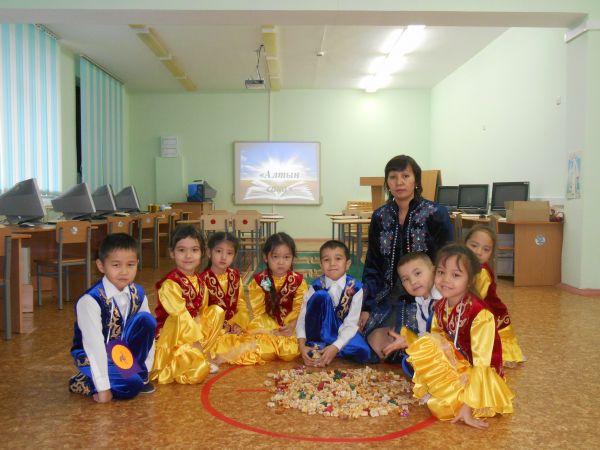 В рамках реализации программы «Рухани жаңғыру», воспитатель Мадиева Асемгуль Болатовна подготовила позновательный урок национальной игры «Алтын сақа для подготовительной группы. Цель занятия: формирование у детей уважения к историко-культурному наследию казахского народа, а также повышения интереса детей к знанию казахских национальных игр, приучающих к ловкости и меткости.