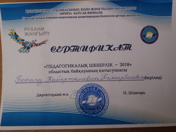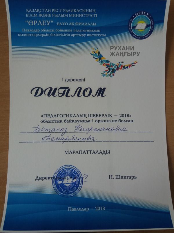 "Педагогикалық шеберлік -2018" байқауының жеңімпазы.Құттықтаймыз!