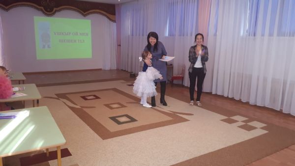 В рамках пилотного проекта "Тілашар" по изучению казахского языка детьми некоренной национальности на базе детского сад № 4 совместно с садами  4,35,46,85,93 прошел конкурс " Ұшқыр ой мен шешен тіл", на котором наша воспитаница Ермакова Доминика продемонстрировала отличные знания казахского языка и заняла 1 место. Поздравляем, желаем  удачи во всем!