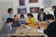 Қыш тақташамен жұмыс сабақтары да тартымды болды.Жұмыстар ұсақ жарылған бөлшектерден жасалынды. Қатысушылар қазақ нақышты өрнекті бөлшектеп ынтамен жасап, барлық оқытушылар бұйым жасау үрдісіне белсенді қатысты. Әрқайсысы өзінің дербес жұмысын жасады. Жасалған бұйымдар әсерлі әрі жарқын, ұлттық нақыштағы дәстүрлі элементері сақталған жұмыстар болып шықты.