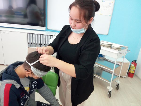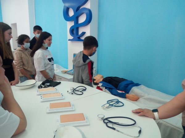 ОӨК-да «Медицина» бағыты бойынша мастер-класс жарақаттардың түрлерін, олардың сипаттамаларын таныстырудан және алғашқы шұғыл, дәрігерге дейінгі көмек көрсетуден басталды. «Қан кету» тақырыбындағы презентацияны көргеннен кейін олар жұпта артериялық қан кету кезінде турникеттерді қолдану бойынша жұмыс жүргізді. Дағдыларды қалыптастыру үшін 18 модельден тұратын жарақат пен зақымға арналған тренажерлер жиынтығы қолданылды. Дәрігерге дейінгі реанимация дағдыларын қалыптастыру үшін балалар муляжда және робот-тренажерде жаттықты. Балалар омыртқаның сынуы бар зардап шегушіні тасымалдауды және аяқ - қолдардың сынуы кезінде металл шиналарды салуды, жүрек - өкпе реанимациясын жүргізуді үйренді-бұл жасанды тыныс алу және жүрекке жанама массаж жасау.