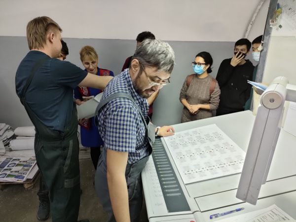 Әр түрлі бөлімдерде экскурсия жүргізу кезінде экскурсия жетекшісі студенттерге әр бөлімнің мақсатын және осы кәсіпорынның белгілі бір мамандары қандай жұмыс түрлерін орындайтынын түсіндірді. Газеттерді басып шығару, папкалар жасау, қағазды кесу, пластина жасау, материалдарды түптеуге дайындау, кітаптар шығару процесі көрсетілді.
