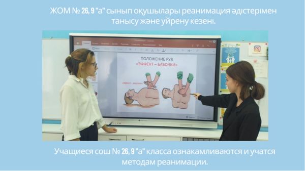 Учащиеся сош № 26, 9 "а" класса ознакамливаются с методами реанимации. На практике учатся выполнять искусственный массаж сердца, искусственное дыхание и применять различные способы реанимации.