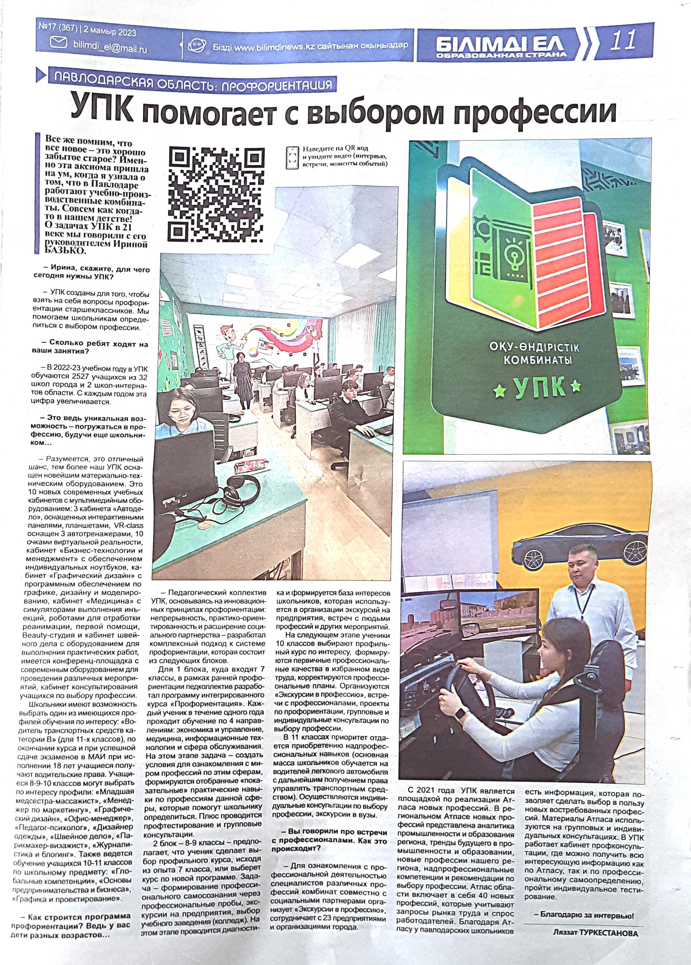 В республиканской газете «Білімді ел» опубликована статья об УПК.