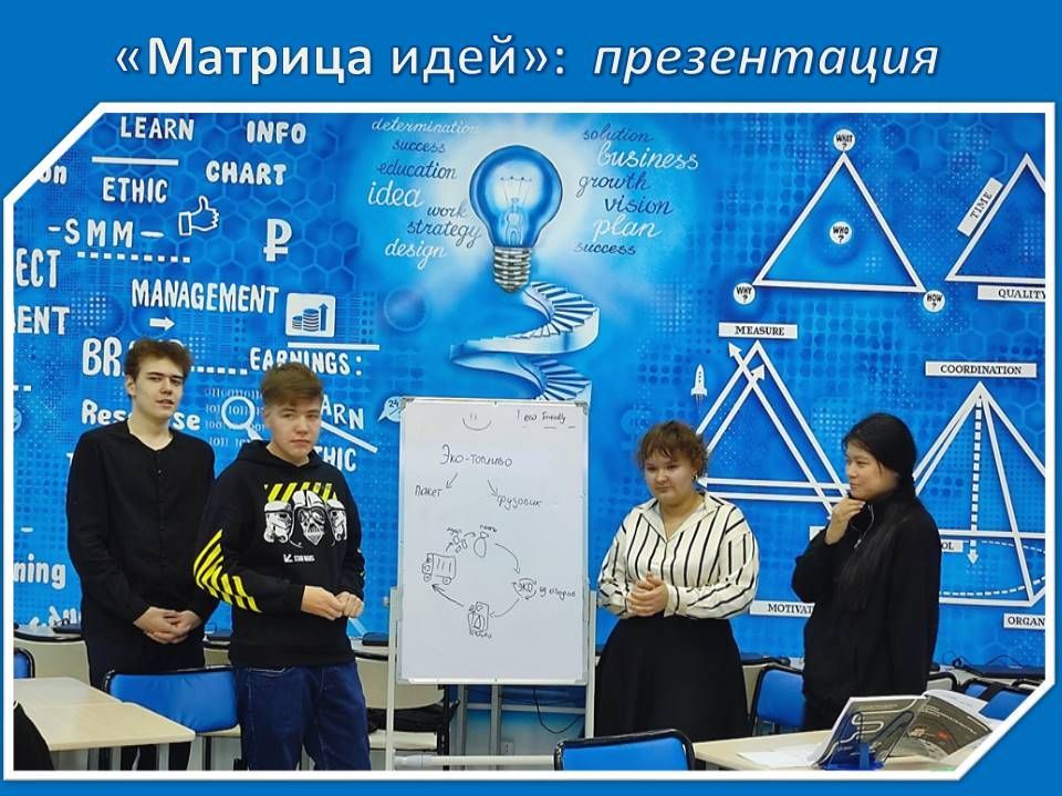 Оқушылар «Іскерлік танысу», «Идеялар матрицасы» іскерлік ойындарында және «Менеджмент: негізгі ұғымдар» тақырыбының конструкторында «4K» құзыреттіліктерін (сыни тұрғыдан ойлау, шығармашылық, ынтымақтастық, коммуникативті дағдылар) жаттықтыруды ұнатты. Сонымен қатар, сыныптағы өнімді жұмысқа жұмыс орындарын ұйымдастыруы және командалық жұмыс үшін құрал-жабдықтары (маркерлер тақталары, ноутбуктер, «дөңгелек үстелдер») айтарлықтай ықпал етеді.