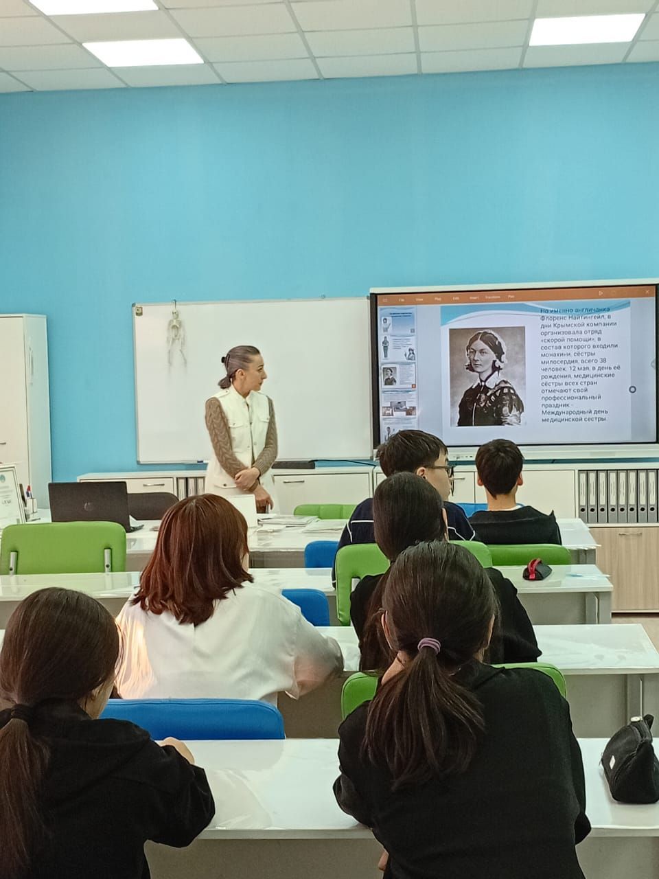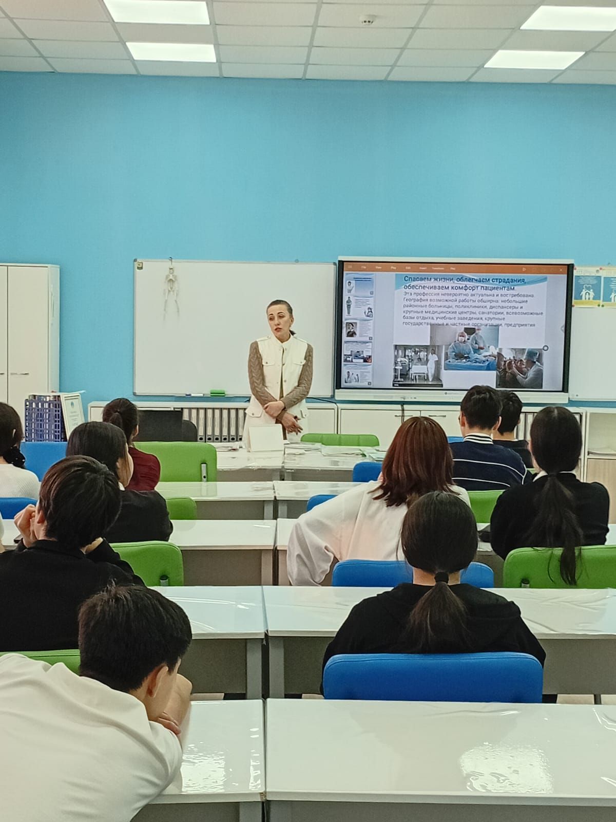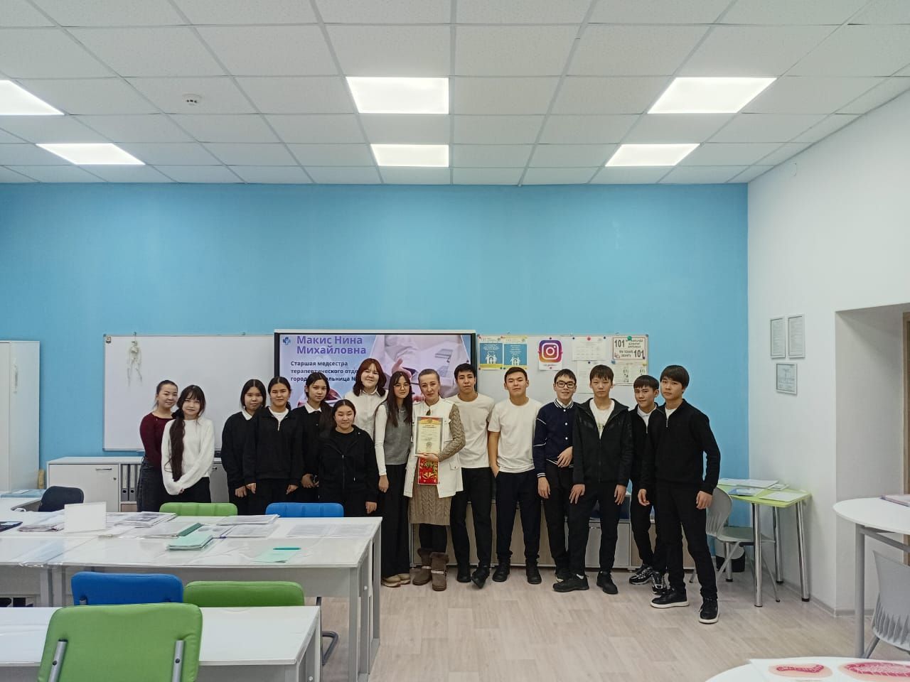 11 декабря учащиеся медицинского профиля УПК встретились с Макис Ниной Михайловной — старшей медсестрой терапевтического отделения 1-й городской больницы