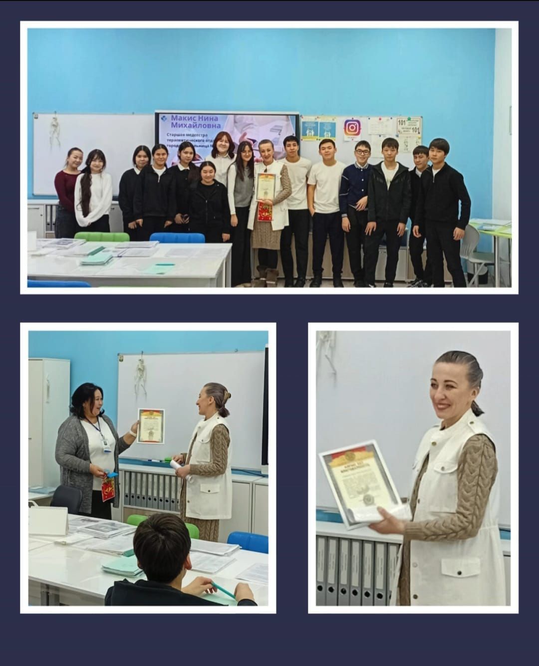 Нина Михайловна поделилась своей историей: несмотря на то, что ее первое образование было педагогическим, она поняла, что ее истинное призвание — это медицина. Это прекрасный пример того, как важно следовать своему сердцу! В ходе беседы на тему «Моя профессия – медсестра» были затронуты ключевые аспекты работы: