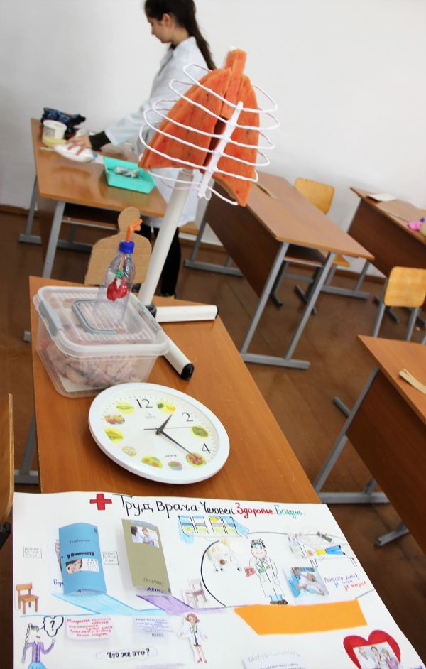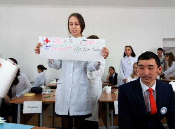 Ну и домашнее задание, позволило ребятам продемонстрировать свои творческие способности. Особенно удалось удивить всех, своим тематическим тортом в виде мозга, Баяхметову Темирхану, СОШ №4, 10а, и Апанасенко Ирине СОШ №11, 9а, соорудившей макет легких.