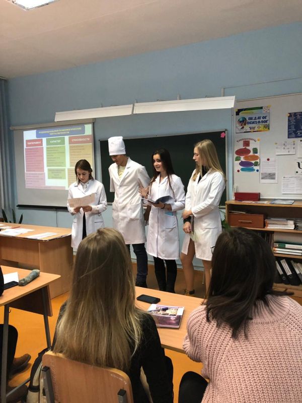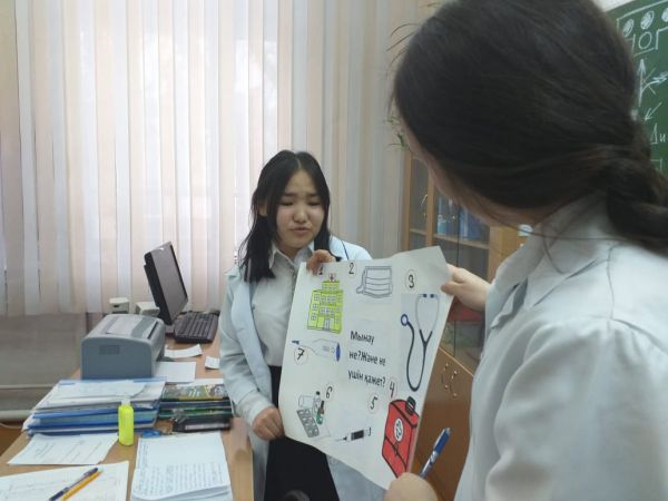Сондай-ақ, «Медициналық» профиліндегі мейірбике мамандығы туралы әңгімелесу жүргізілді, мұнда оқушылар медбикенің тиісті мамандықтары туралы, түрлері және жұмыс орны туралы әңгімеледі.