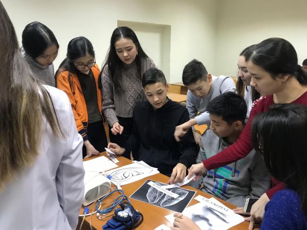 * «Мега –жалды» сауалнама(сұрақ-жауап). Профильдің бұрынғы түлектері жаңа топтардың балаларына медицинаға қатысты сұрақтарға жауап берді. Профильді бітірушілердің басқа профильдерге ауысса да білімдерін ұмытпағандары жақсы.