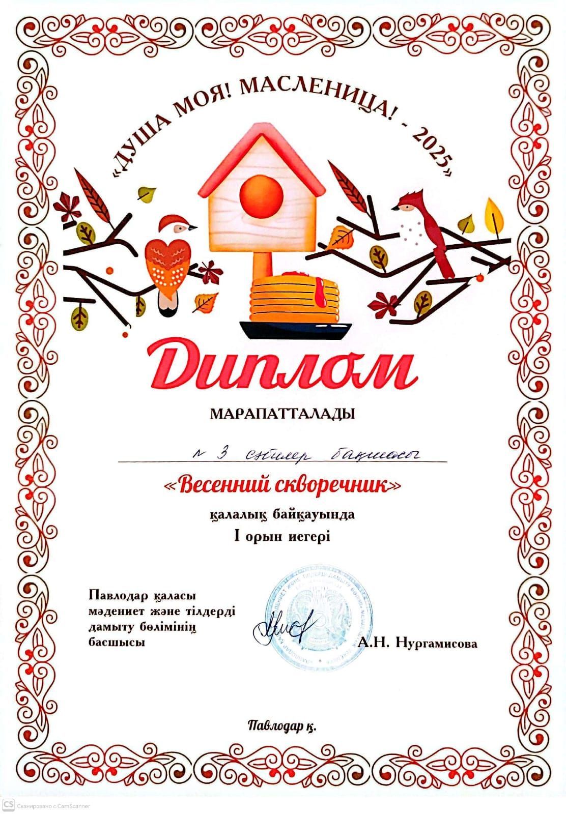 «Біздің балабақшамыз қалалық «Көктемгі ұяшық» байқауының ЖЕҢІМПАЗЫ атанғанын мақтанышпен және зор қуанышпен хабарлаймыз!