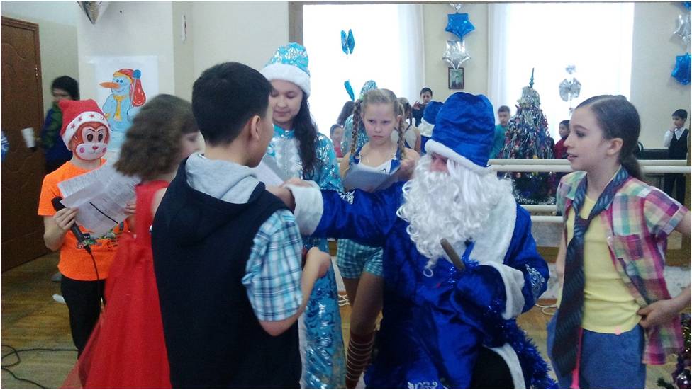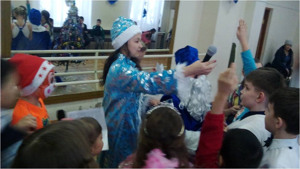 30 декабря, 2015 года, в ДПК "Жигер",подразделении «Дос» прошел новогодний утренник для воспитанников клуба. Самый любимый праздник как взрослых, так и детей, конечно же Новый год. Подготовка началась задолго до наступления праздников. Педагоги с детьми разучивали стихотворения, проводили беседы на тему Нового года, новогодних традиций, руководители секций разучивали с воспитанниками песни и танцы. Огромную работу провели по оформлению клуба. В центре большого зала – украшенная ёлка, на зеркалах нарисованы свечи, снеговик. Дети пришли на представление нарядные, весёлые в предвкушении праздника. ПДО, участвовавшие в новогоднем представлении, проявили себя хорошими артистами, показав всё своё творческое мастерство, артистизм, задор и организаторские способности. Им пришлось перевоплотиться в Снегурочку и Деда Мороза. С самого начала представления сказочные герои увлекли детей в волшебный мир сказки. Дети смогли окунуться в праздничную атмосферу приключений, поучаствовать в интересных конкурсах. С появлением Деда Мороза начался настоящий праздник с песнями и танцами, хороводами вокруг ёлки. После представления дети читали стихи Деду Морозу и Снегурочке, фотографировались с персонажами, получили сладкие новогодние подарки.