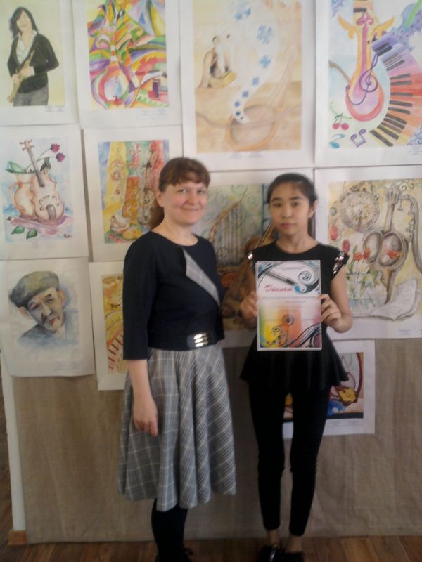 От ДПК «Балшуак» в конкурсе приняли участие 2 картины от Студии дизайна «PavLigne» (руководитель: Серенькова Анастасия Николаевна) – «Мелодия Кобыза», автор Салтанат Кенесова и «Живые звуки виолончели», автор Окунева Полина (дипломант конкурса).