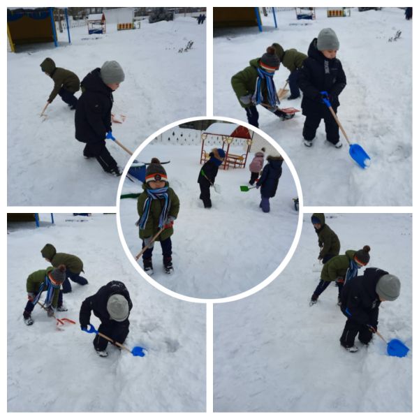 Шаңғымызды тебеміз,: -  Балалар өз телімдерін қардан тазалады. Өз -өздеріне қызмет етті.