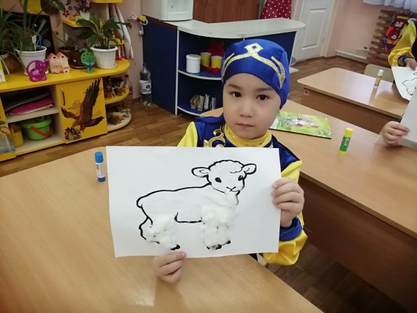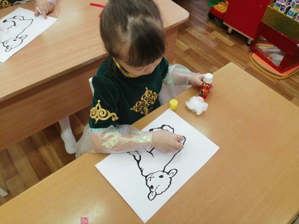 Инновациялық  әдістер мен технологияларды қолданып, шығармашылық дағдыларды, эстетикалық талғамды дамыту мақсатында,   балалар  кошақанның жүнін мақтамен жапсырды. Оқу қызметінде  балалар белсенділіктерін көрсете алды.