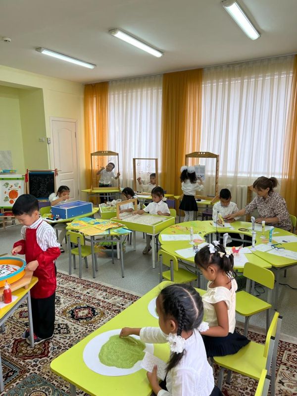 Балабақшаның педагог- психологі Хайлямова Н.А   "Арт-  студия" кабинетінде  балалардың шығармашылық ізденістерін арт-студия арқылы жетелеуде.
