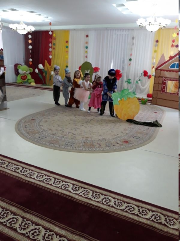 Ортаңғы "Ә"  тобының балалары "Шалқан" ертегісі бойынша қойылымды ағылшын тілі мұғалімімен бірлесе өткізді. Әр бала өз рөліне барынша кіріп, өте жоғары деңгейде сомдап шықты. Сөздері ағылшын тілінде болғанына қарамастан, жаттап жақсы меңгерген. Тіпті өз рөлдері сәйкес дауыс ырғақтарында өзгертуге тырысқан. Бұл барлығы тәрбиешілердің және ағылшын мұғалімінің дайындығының арқасы деп білеміз. Балаларды әрі қарай шығармашылыққа баулып, өзі өзін аша білуіне, жан жақты болуына үлес қосу басты мақсатымыз.