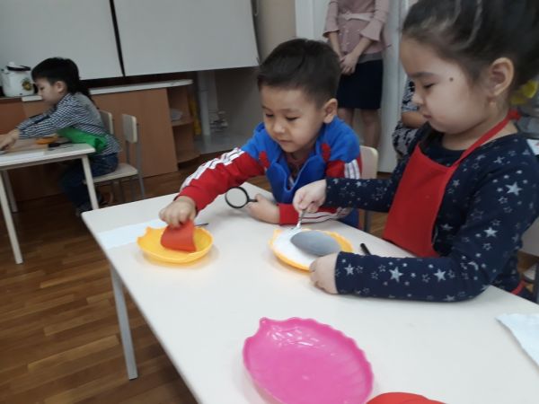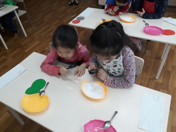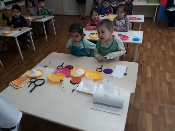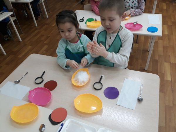 Орта "Ә" тобының тәрбиешісі Байдилова Маржангүл Жақсыбаевна Қоршаған ортамен танысу оқу қызметінде балалармен қыс мезгіліндегі қар мен мұзды зерттеумен айналысты. Қар мен мұзды салыстырып, ерекшеліктері мен айырмашылықтарын айыра білуге үйретті. Балалар әр экспериментті қызыға, құлшына орындады. Оқу қызметі қойылған мақсатына жетті.