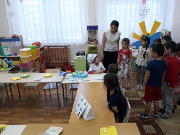 Орта "Б" тобының тәрбиешісі Нурғалымова Динара Кумаровна Қоршаған ортамен танысу оқу қызметінде балаларды қыс мезгіліндегі ерекшеліктермен таныстырды. Сондай ақ, оқу қызметіне "дәрігер" мазмұндық ойыны кірістірді. Балалар рөлге кіріп, еркін ойнап шықты. Сұрақтарына толық жауап ала отыра, оқу қызметінің мақсат, міндеттері орындалды.