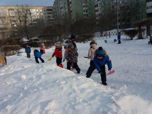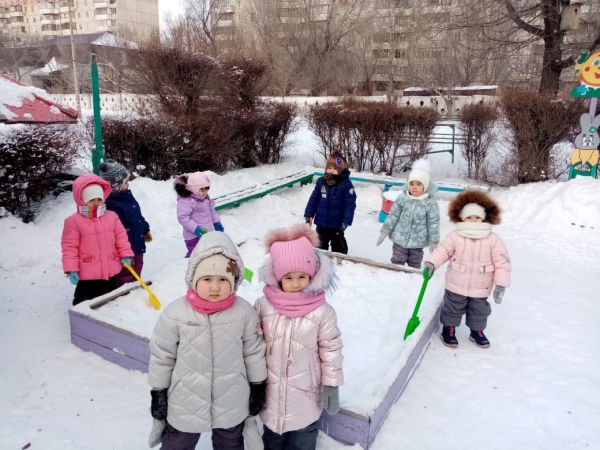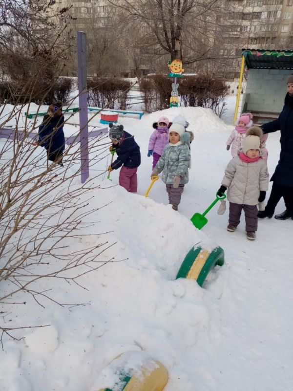 бояған ақ түспенен- дегенде балаларға қысқы серуен өте ұнады. Әр топ өз алаңдарын қардан тазалап, Аққла соқты. Күрекпен жұмыс жасауға үйренді.