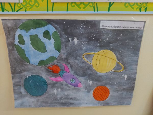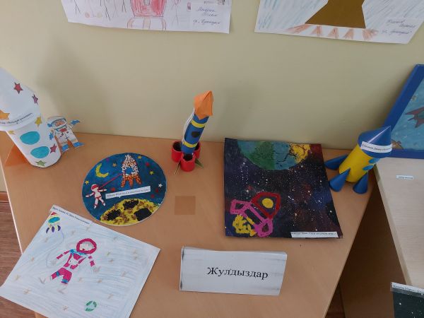 Балабақшамызда "Ғарышкер күніне" орай балалармен сурет көрмесі және қолөнер шеберлігі ұйымдастырылды. Балалармен Ғарышкер жайлы түсініктер қалыптастырылды. Ғарыш, аспан денелерімен ж"не де ғарышқа ұшу құрылғыларымен таныстырылды. Олар жайында балаларға айтылды. Балалар осы тақырыпта сурет көрмесіне түрлі суреттер салды. Ата-аналарымен қолқнер жасады. Балалардың бңлңмдері арта түсті, көптеген қажетті ақпараттарды біле алды.