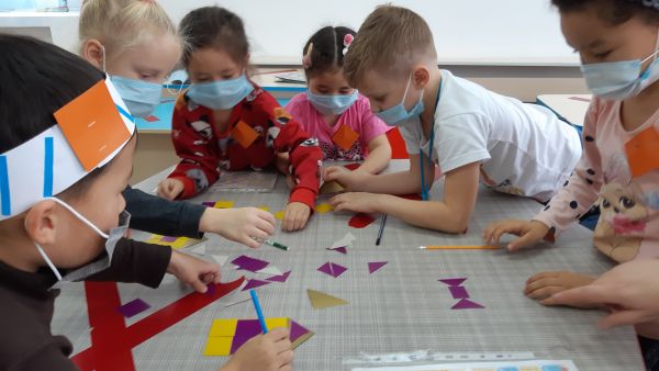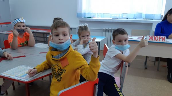 В течение часа младшие школьники открывали в себе математические дарования. Они решали весёлые задачки, собирали бусы из чисел, искали потерянные цифры, завершали логические цепочки, составляли из предложенных фигур герб команды. Все эти интересные задания на развитие математической грамотности чередовались весёлой физминуткой.
