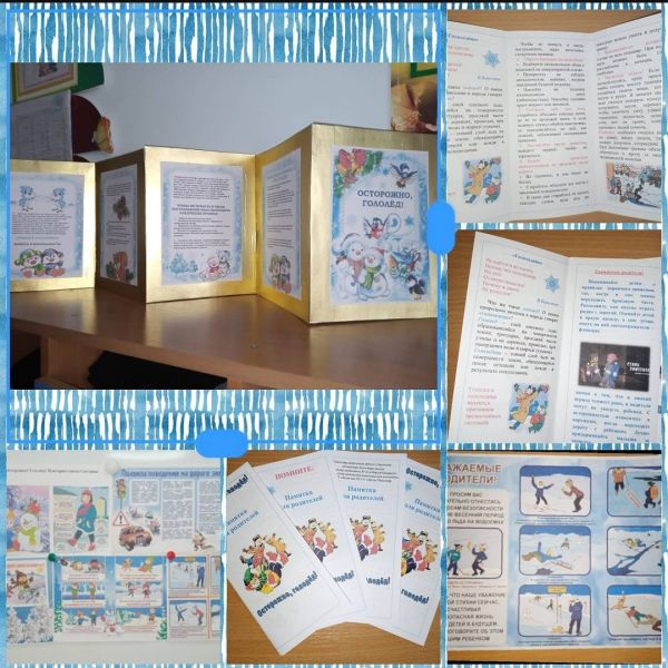 " Безопасность зимой", направленного на предотвращение детского травматизма ,в детском саду #23 проведена работа с родителями информационного характера.Были изготовлены папки-передвижки ,памятки, буклеты на закрепление правил детской безопасности .