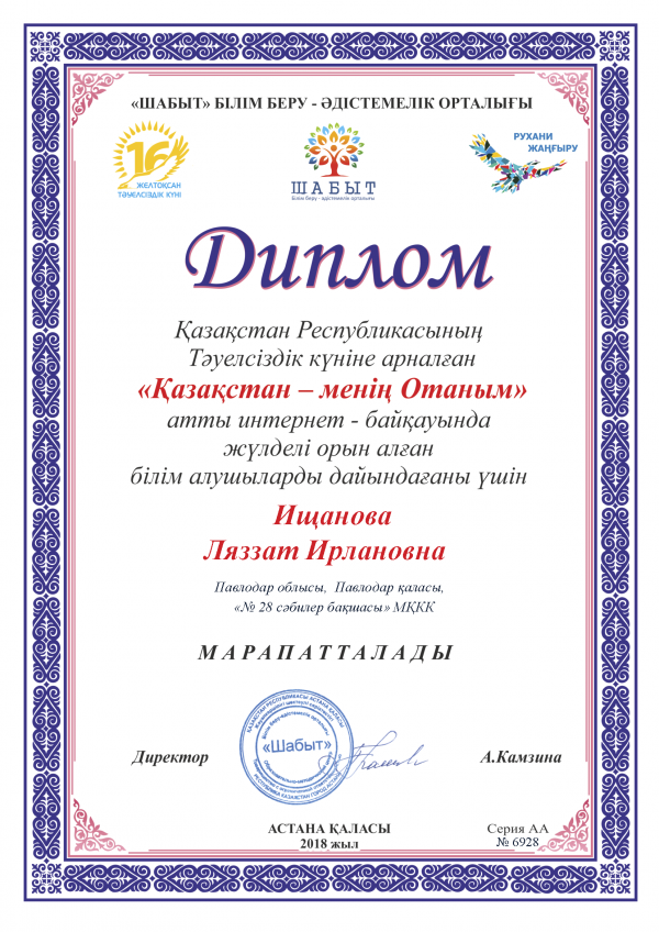 Дайындаған тәрбиеші Ищанова Ләззат Ирлановна.