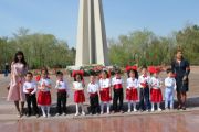Біздің бақшамыздың Ортаңғы "Ә" тобының тәрбиеленушілері мен педагогтары "Мәңгілік алауға" барып гүл шоқтарын қойды.Ардагер аталарымызға мың алғыс!!!