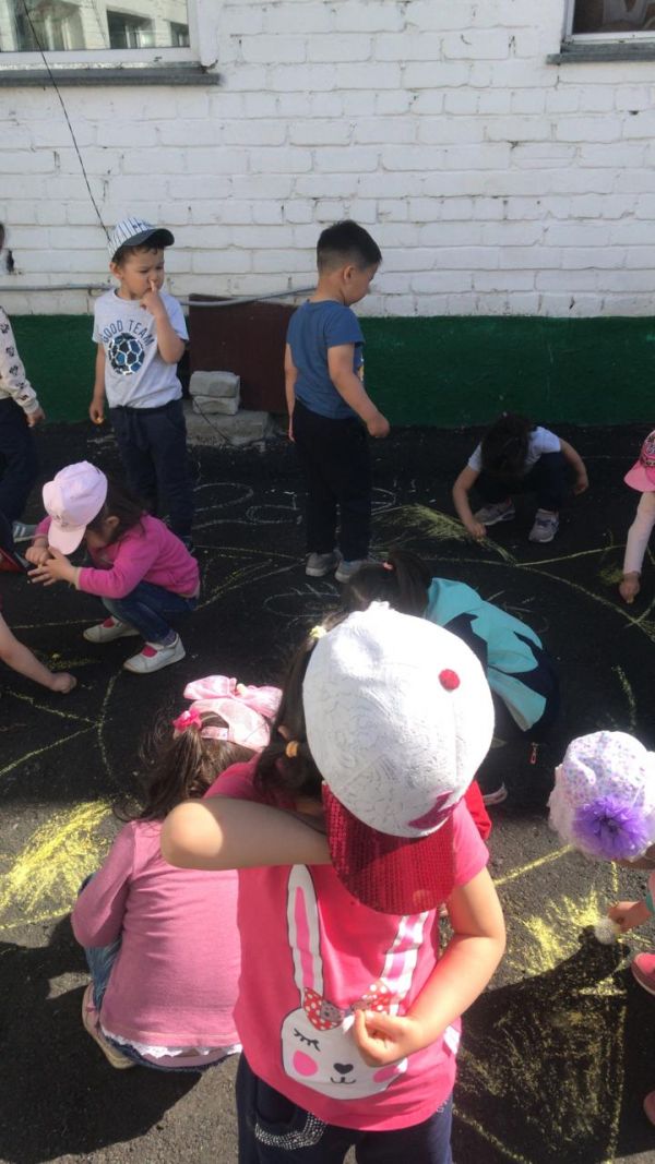 Балабақшамызда 1 маусым балаларды қорғау күніне арналған мерекелік іс-шаралар өткізілді. Балаларға қонаққа сайыкмазақ, сиқыршы, қоян, аю кейіпкерлері келіп балалардың көңілдерін көтерді. Балалар сабын көпіршіктерін жіберіп, жерге әр түрлі борлармен әдемі де әсерлі суреттер салды.