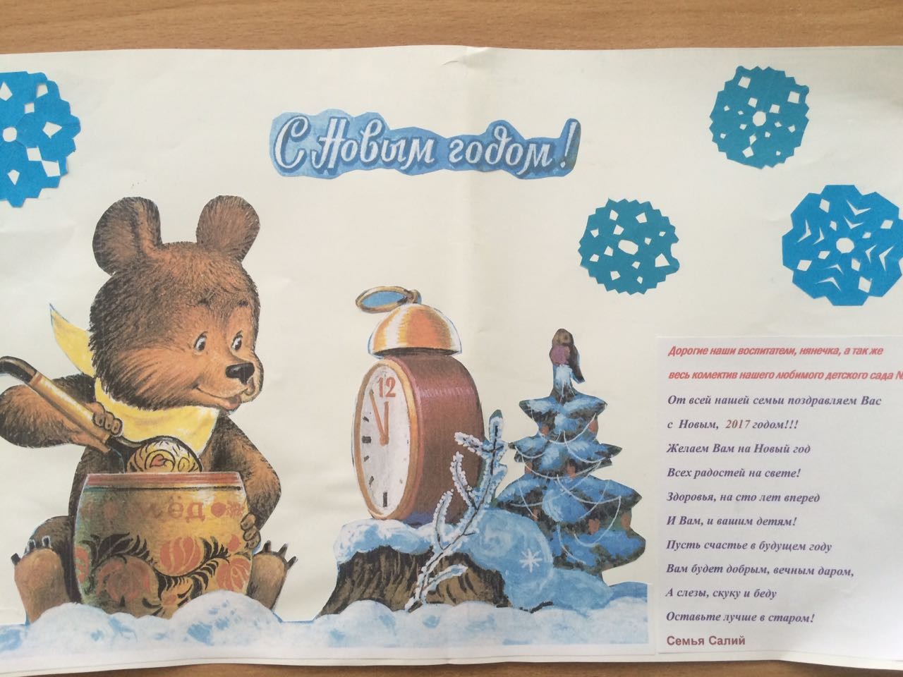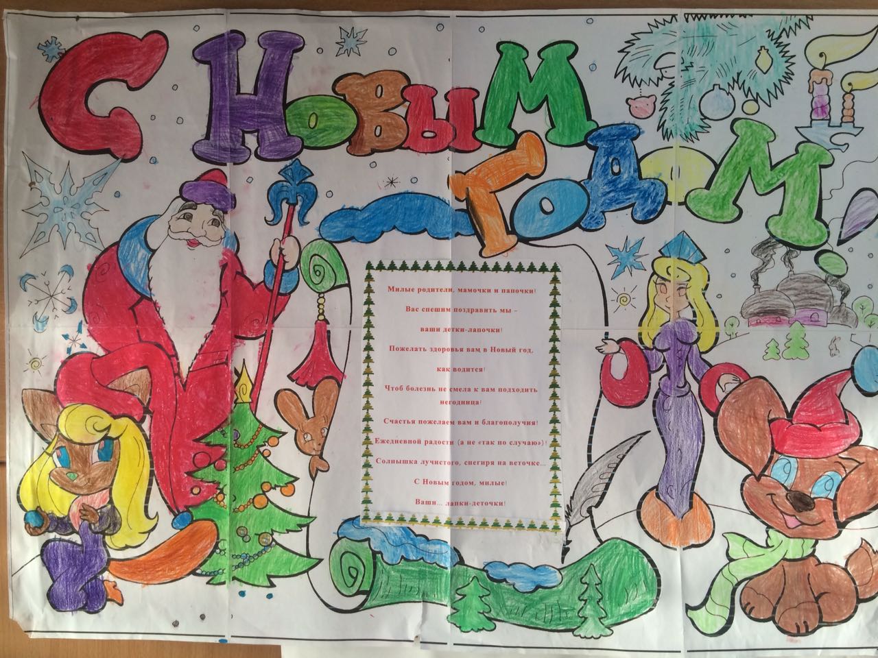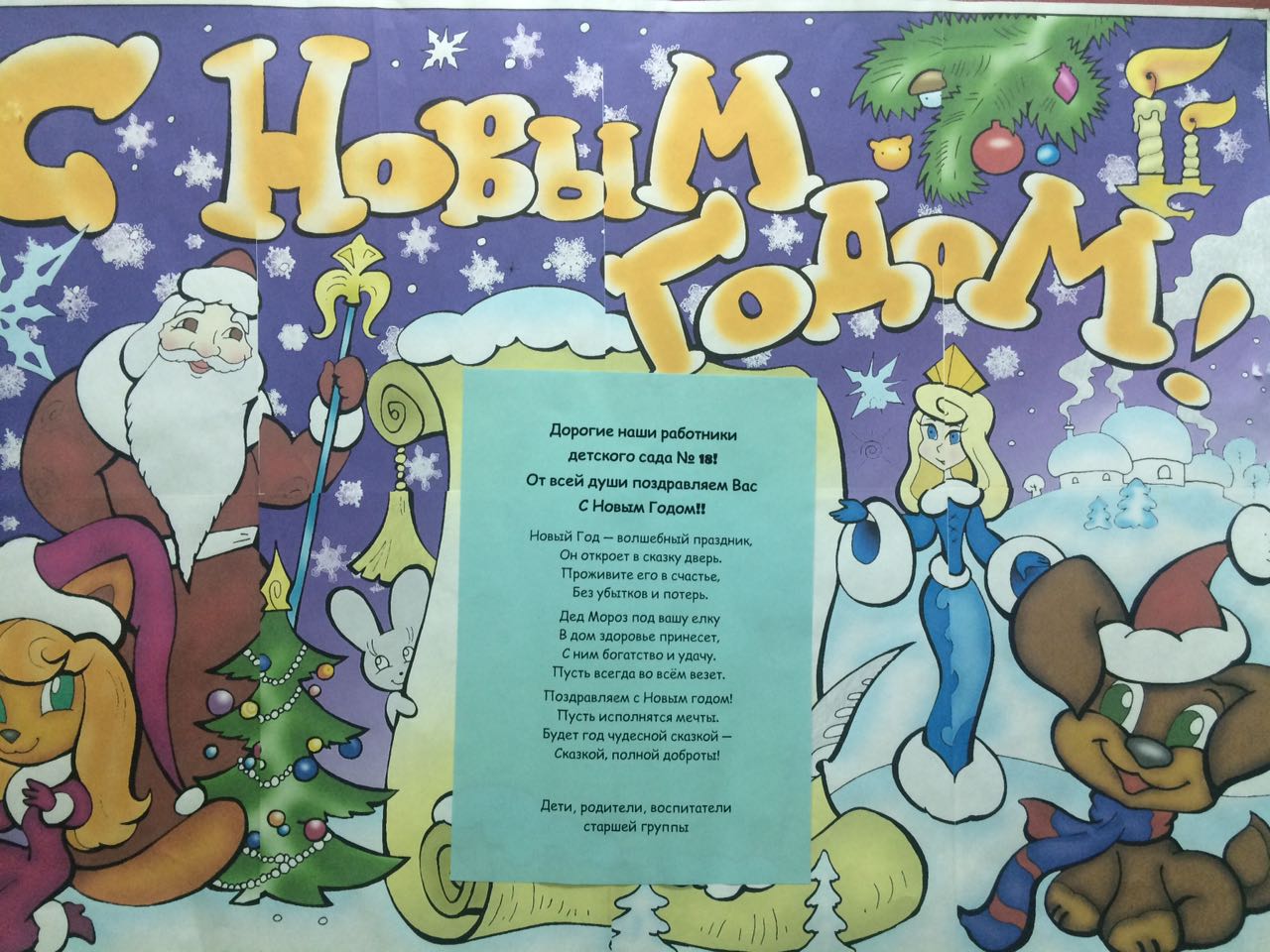 Новогодние поздравительные стенгазеты от родителей, детей и сотрудников детского сада.