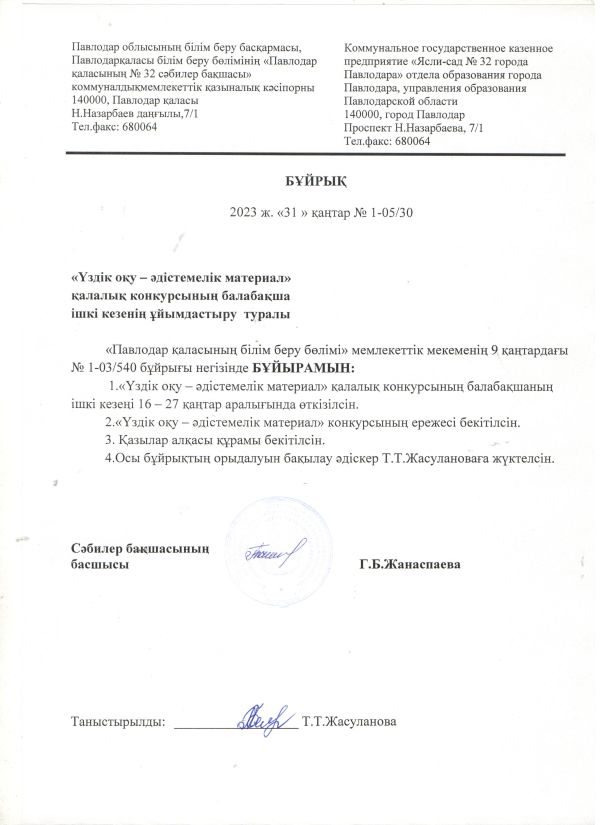 Павлодар облысының білім беру басқармасы,Павлодар қаласы білім беру бөлімінің «Павлодар қаласының №32 сәбилер бақшасы» коммуналдық мемлекеттік қазыналық кәсіпорны