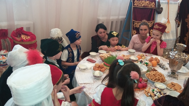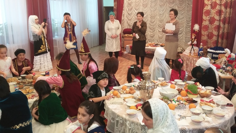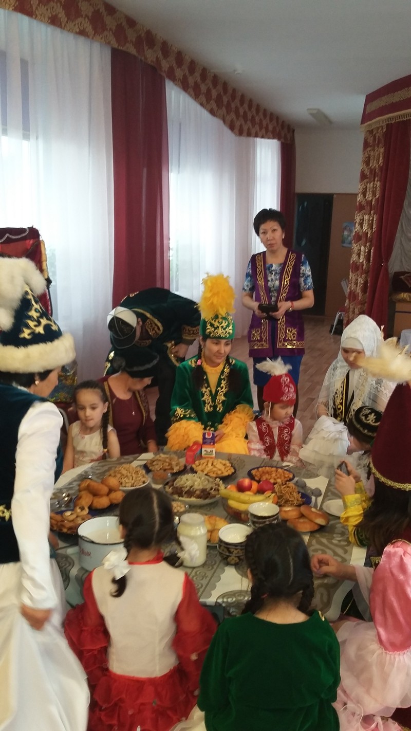 Бақшамызда «Наурыз» мерекесі қарсаңында тәрбиеленушілер тұлғалығын біріктіру мақсатында этно-қазақстан мәдениеті арқылы ата-аналармен қызықты шаралар өткізілді: даярлық екі топ ата-аналарымен, әрбір ұлт өкілдері арасында конкурсқа белсене қатысты. Олар өз ұлтының салт-дәстүрін, ұлттық тағамдарын, әдет-ғұрпын, ойындарын көрсетті. Естияр топтарының ата-аналары өзара сайысқа түсіп, ауыл-ауыл болып айтысты, күмбірлетіп домбыра мен қобыз тартылды, би биленді. В преддверии праздника Наурыз в целях осуществления интеграции личности воспитанников через этно-казахстанскую культуру у нас в саду прошли интересные мероприятия с родителями, конкурс между родителями подготовительных групп где принимали участие родители-представители разных национальностей. где каждый показал обычаи, традиции своего народа, национальные блюда, обряды, игры. между родителями средних групп прошел сайыс между аулами. где звучали народные песни, звуки домбры и кобыза, танцы.