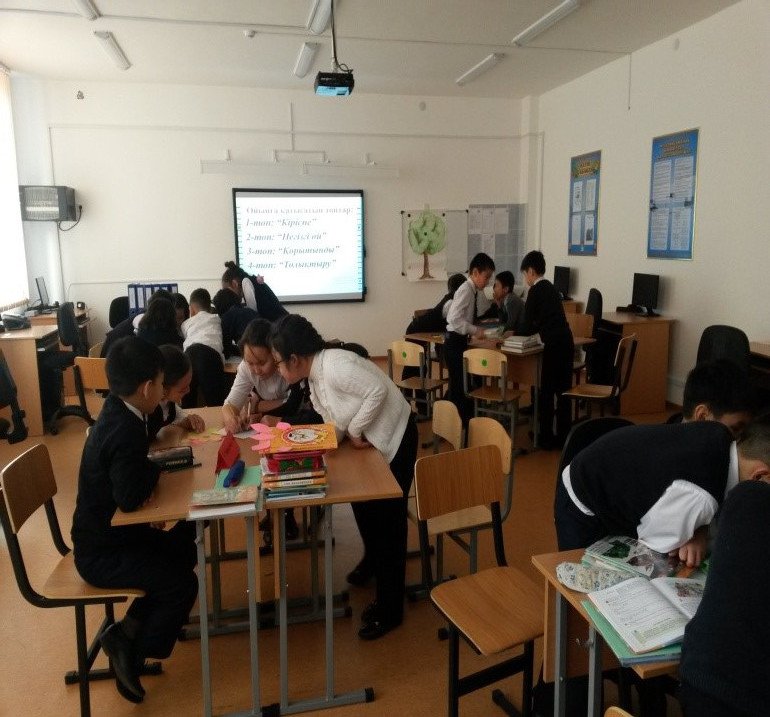 1 Күні кеше 4 "А"- сыныбында Қалдыгүл Манашқызы Абдуллаеваның ұйымдастыруымен сөз өнерінен дамыту сабағы өтті. Тақырыбы: Ы.Алтынсариннің "Бай мен жарлы баласы" атты әңгімесі. Мақсаты: әңгіме жанрын оқыта отыра оқушыларды өзіндік талдау жасауға, ойын анық жеткізе білуге төселдіру және әңгіменің тақырыбы мен идеясын ашу арқылы адамгершілік пен адал еңбекке, шынайы достыққа тәрбиелеу. Сабақтың ұранымен басталған сабақта үй тапсырмасы "сұрақ-жауап" әдісі арқылы тексерілді. Оқушылар өз дайындықтарын көрсетті. Сұраққа жауап берген оқушылар тиісті бағаларын алды. Жаңа сабақ барысында оқушылар түс таңдау арқылы топқа бөлініп, топтық жұмыстар орындады. "Кіріспе" тобы жасыл, "Негізгі ой" тобы қызыл сары, "Қорытынды" тобы қызыл, "Толықтыру" тобы сары түсті таңдады. Дайындыққа 10 минут уақыт берілді. Топ ішінде хатшы, баяндаушы тағайындалды.