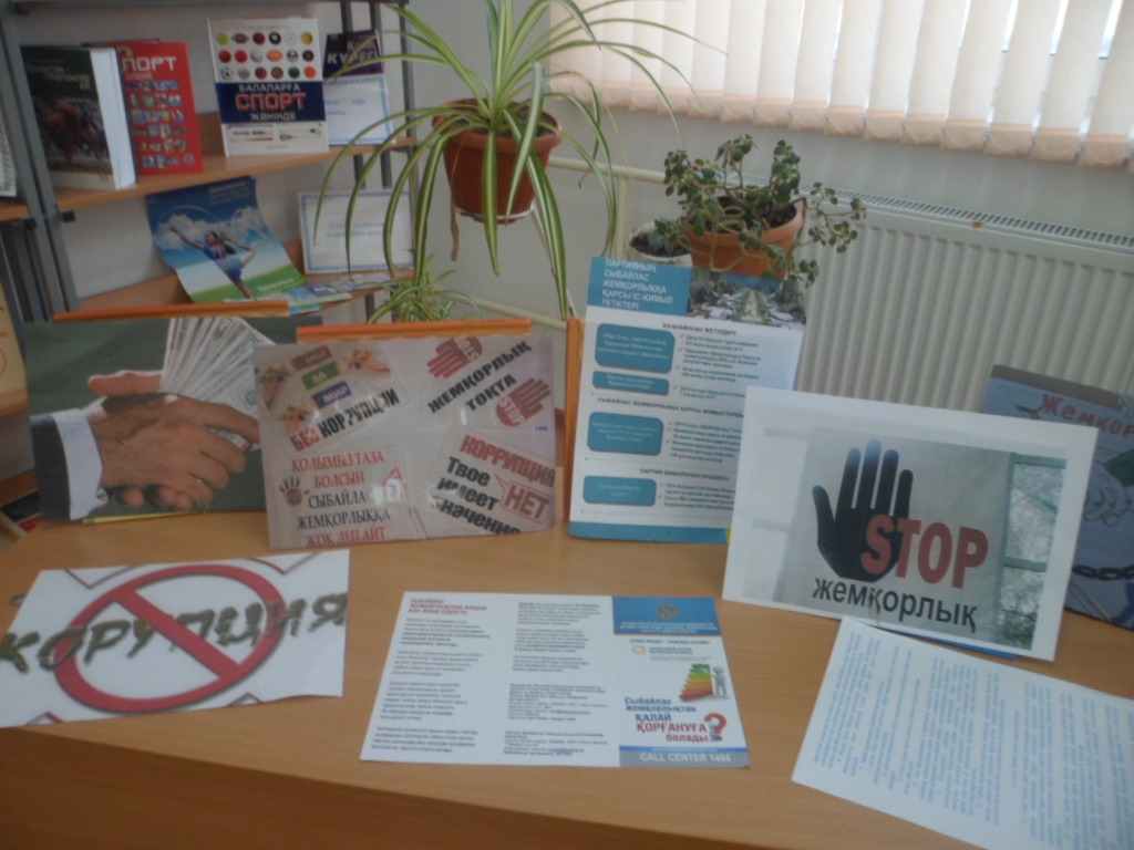 Мектеп кітапханасында 2016 жылдың 5 желтоқсанында «Адал ұрпақ» ерікті мектеп клубына көмек ретінде жалпы кітапхана оқырмандарына «Жемқорлыққа жол жоқ» деген атаумен шағын кітап сөресі қойылды. Мақсаты: Жасөспірімдерді рухани –адамгершілік және азаматтық-патриоттық тәрбиелеуге баулу.