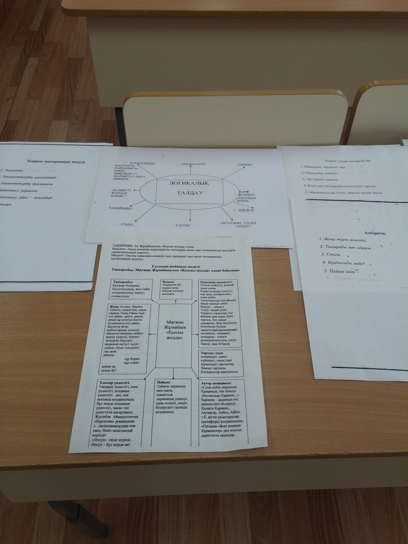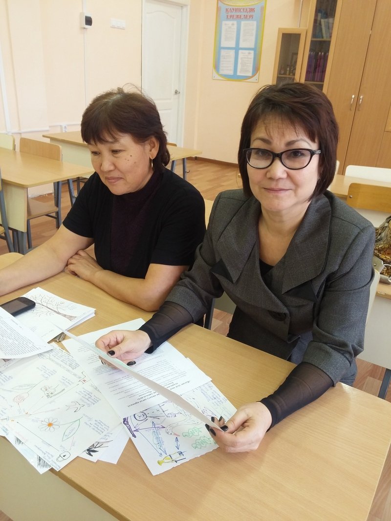 «Қазақ тілі декадасы» аясында қазақ тілі мен әдебиеті мұғалімдері көптеген іс-шаралар ұйымдастырып жатыр. «Көркем шығарма – әдебиеттің құндылығы. Көркем шығарманы оқыту оқушының сөз қадірін түсінерлік ойлау әрекетін дамыту, рухани дүниесін байыту, эстетикалық талғамын жетілдіру, адамгершілік қасиетін қалыптас тыру» деген әдебиет зерттеуші ғалым Қажым Жұмалиев пікірін басшылыққа ала отырып, 29 қазан күні қазақ тілі мен әдебиеті мұғалімі Мұқышова Бақтылы Қиманқызы «Көркем шығарманы іздендіре оқыту арқылы оқушылардың ойлау мен сөйлеу әрекетін дамыту» тақырыбында әріптестерімен тәжірибе алмасып, шеберлік сабағын өткізді. Шеберлік сағатына қатысқан мұғалімдер ұстаз қолданатын көптеген технологиялермен танысып, ризашылығын білдірді. Шеберлік сағаты пайдалы өтті. Қазақ тілі әдістемелік бірлестігі 20151017_145209 20151017_141101 20151017_141112 20151017_144833