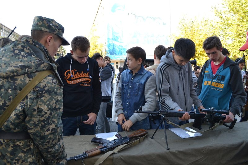 30 сентября 2015 года учащиеся ГУ СОШ №39 посетили воинскую часть 5512 Национальной гвардии Республики Казахстан. В первую очередь хотелось бы поблагодарить молодежное крыло “Жас Отан” за предоставленный автотранспорт. Учащиеся школы в количестве 22 учеников и двух преподавателей прибыли 16.00 в воинскую часть. Нас встретило командование воинской части майор Ча Владимир Денисович и сержант контрактной службы Мунайтпасов Канат Жанаевич. После краткого доклада о традициях в воинской части состоялась экскурсия, ученики ознакомились с боевой техникой, экипировкой, боевым оружием находящимся на вооружении воинской части. Особенно ребятам понравилось работа кинологов, которые со своими питомцами продемонстрировали выучку собак. Также учащиеся посетили казарменное помещение где распологаются спальные помещения, столовая, комната чистки и смазки оружия, комната умывания и тренажерный зал, где военнослужащие готовятся к службе. Хотелось бы поблагодарить командование воинской части 5512 за экскурсия и пожелать им успехов в боевой и политической подготовке. Преподаватель организатор НВП С. А.Балтабаев DSC_0106 DSC_0123 DSC_0137 DSC_0167 DSC_0178 DSC_0189 DSC_0196
