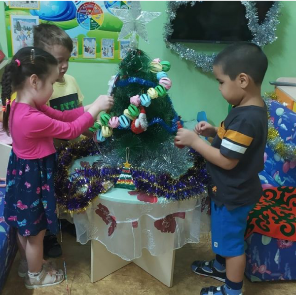 Перед Новым годои воспитатели и дети украшают группу, чтобы чувствовалась атмосфера праздника и волшебства.Не обязательно для этого покупать декор. Дети старшей группы делали новогодние игрушки из природного, бросового материала и даже из круп, затем украшали елочку. Дети знают, что родители всегдапомогут и будут очень рады провести вместе увлекательный досуг