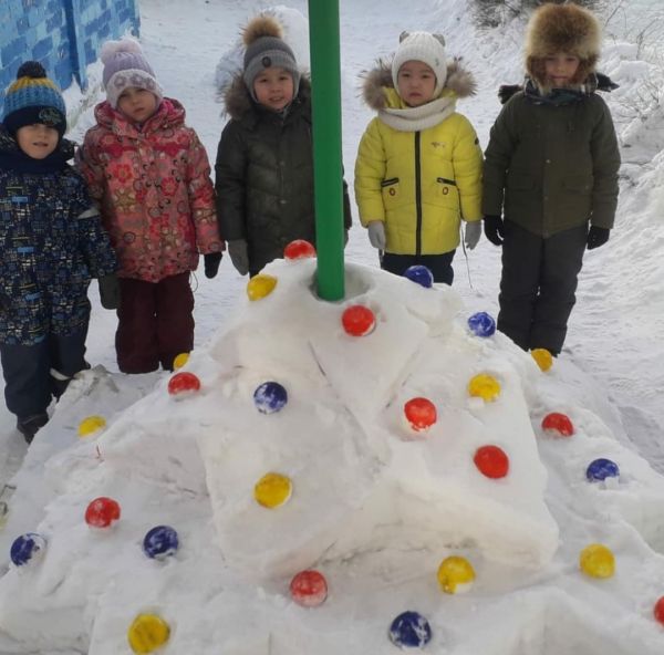 Зима - волшебное время года для ребятишек. Раздолье для зимних игр и забав. Чтобы во время зимнего периода участок выглядел эстетично и интересно, воспитатели вооружились фантазией и творческими умениями, украшая игровую площадку разнообразными постройками из снега. А воспитанники предшкольной "Б" группы являются непосредственными участниками и помощниками творческого процесса.