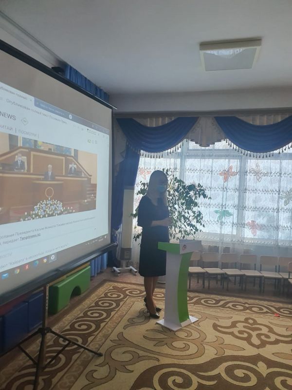 2021ж 15.09 " балабақша басшысы Ж.А.Смагулова қызметкерлерді Президент Қасым Жомарт Тоқаевтың "Халық бірлігі және жүйелі реформалар - елдің өркендеуінің берік негізі" атты қазақ халқына Жолдауымен таныстырды. Жолдауда пандемиядан кейінгі кезеңдегі экономикалық даму, денсаулық сақтау жүйесінің тиімділігін арттыру сияқты, Қазақстан халқының әл-ауқатын арттыруға бағытталған, бірқатар қосымша бастамалар бойынша мәселелер қозғалды.