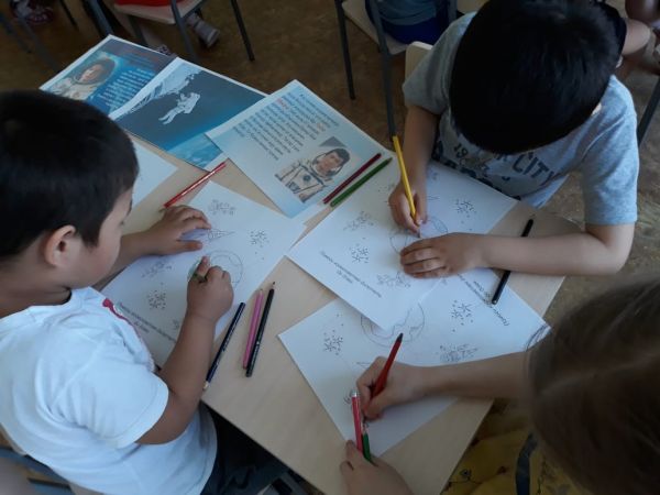 Ересек тобында қазақ тілі пәнінен "Адам мен ғарыш" тақырыбына өткізілген сабақ, Балалар қызығушылықпен ой бөлісіп, сондай ақ сөздік қорларын дамытып,логикалық ойлау қабілеттерін жетілдіру мақсатында балалар өз білім деңгейлерін көрсетті