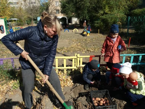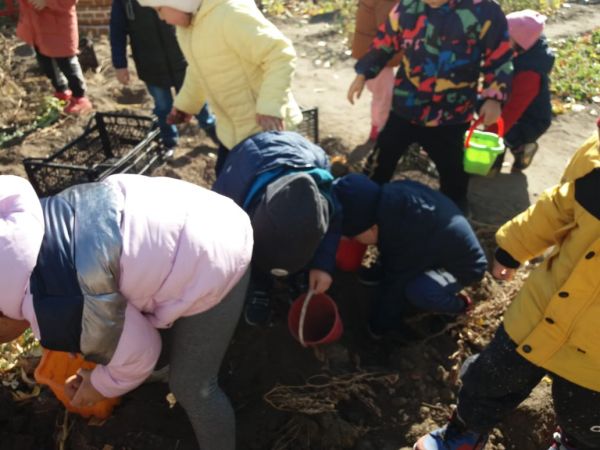 Наступила волшебница осень, время сбора урожая! С большой радостью дети собирали свой урожай. Ведь они сами вместе с воспитателями все лето ухаживали за растениями в огороде: поливали, пололи, рыхлили. И огород порадовал неплохим урожаем:томаты, кабачки, лук, укроп, клубника, картофель.Огород в детском саду - это еще и возможность видеть результаты своей работы. Совместный труд на огородедает возможность научиться ответственности, способствует формированию трудовых навыков и объединению детского коллектива. И конечно огород - это труд на свежем воздухе, который способствует сохранению и укреплению здоровья детей, гармоничному развитию.