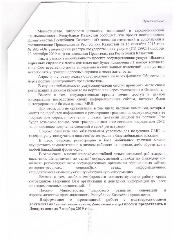 Қазақстанда 1 қарашадан бастап мекенжай анықтамасы жойылады және мемлекеттік қызметтер тізілімінен шығарылады. Бұл 1 қарашадан бастап мемлекеттік органдар, мектептер, медицина мекемелері, т. б. азаматтардың мекен-жайы туралы анықтаматалап етуге құқығы жоқ екенін білдіреді. Оны "Азаматтарға арналған үкімет" филиалдары арқылы да, электрондық үкімет порталы арқылы да алуға болмайды.