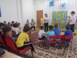 Біздің іс-шарамыздың мақсаты: балалардың көше қозғалысы ережелерін білуін бекіту; жол қозғалысы белгілері мен бағдаршам сигналдарын белгілеу; бағдаршам мен реттеушісі не үшін қажет; жаяу жүргіншінің және жолаушының жолда жүру ережелерін білу. Ойын-викторина өткізілді. Жол қозғалысының белгілері. Бүгін ата-аналармен бірге жол жүру ережесін бірге үйретеміз. "Жол жүру ережесін үйретейік!"". Осындай ұранмен біздің ата - аналар балалармен ойын-викторинада жұмыс істеді және белсенді қатысты. Ата-аналардың қатысуынсыз балаларды көшеде өзін дұрыс ұстауға үйрету өте қиын.