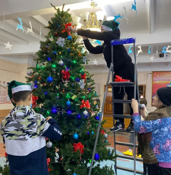 Наряжаем новогоднюю ёлку вместе с ребятами центра УОЦ “Балдаурен” и участвуем в челлендже “Ёлочка гори!” телекомпании “Ирбис”.
